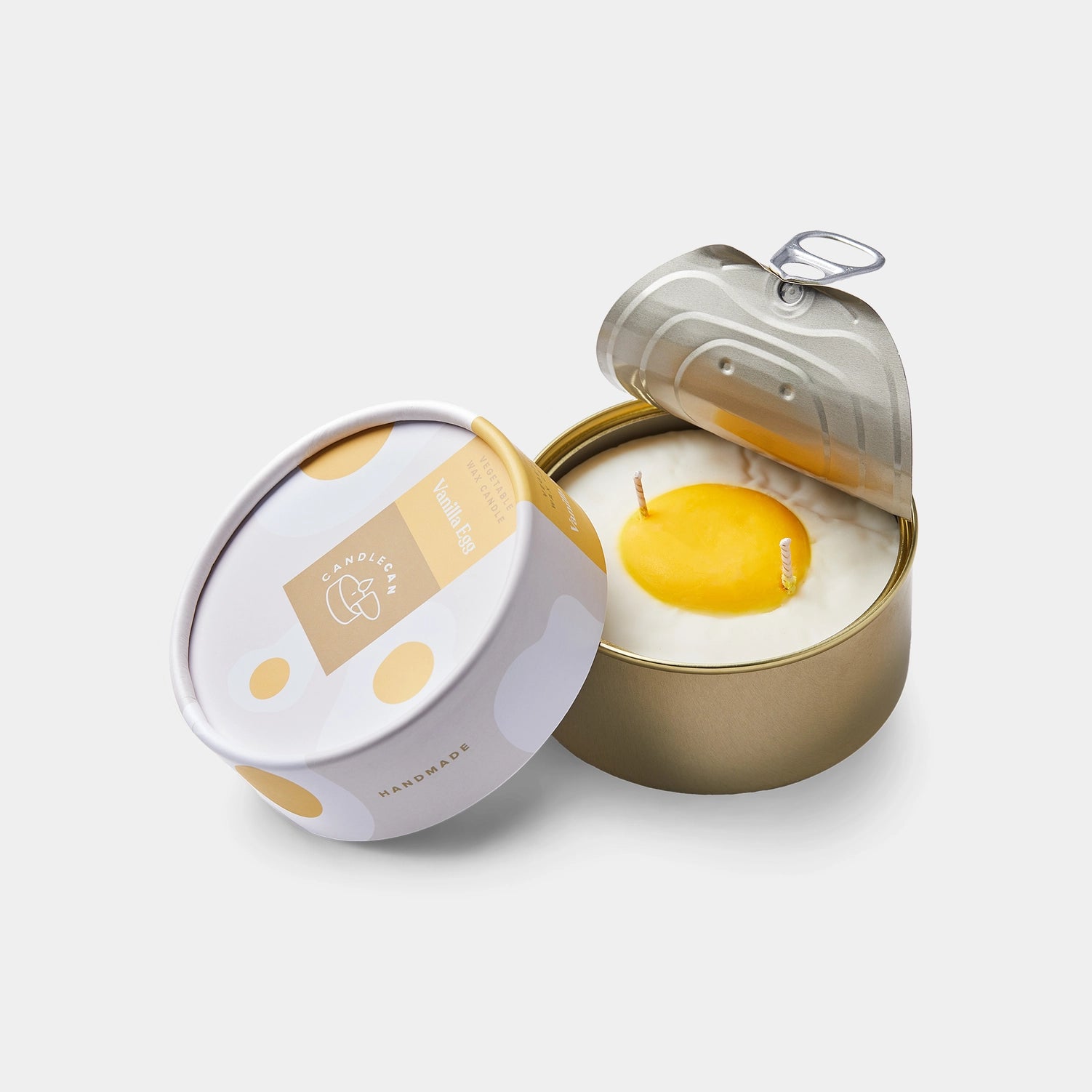 Vanilla Egg CandleCan is a gourmet food candle sealed in a can like real food. This large vanilla scented candle is super realistic and has a burn time of over 30 hours. Handmade in Lithuania, Europe.