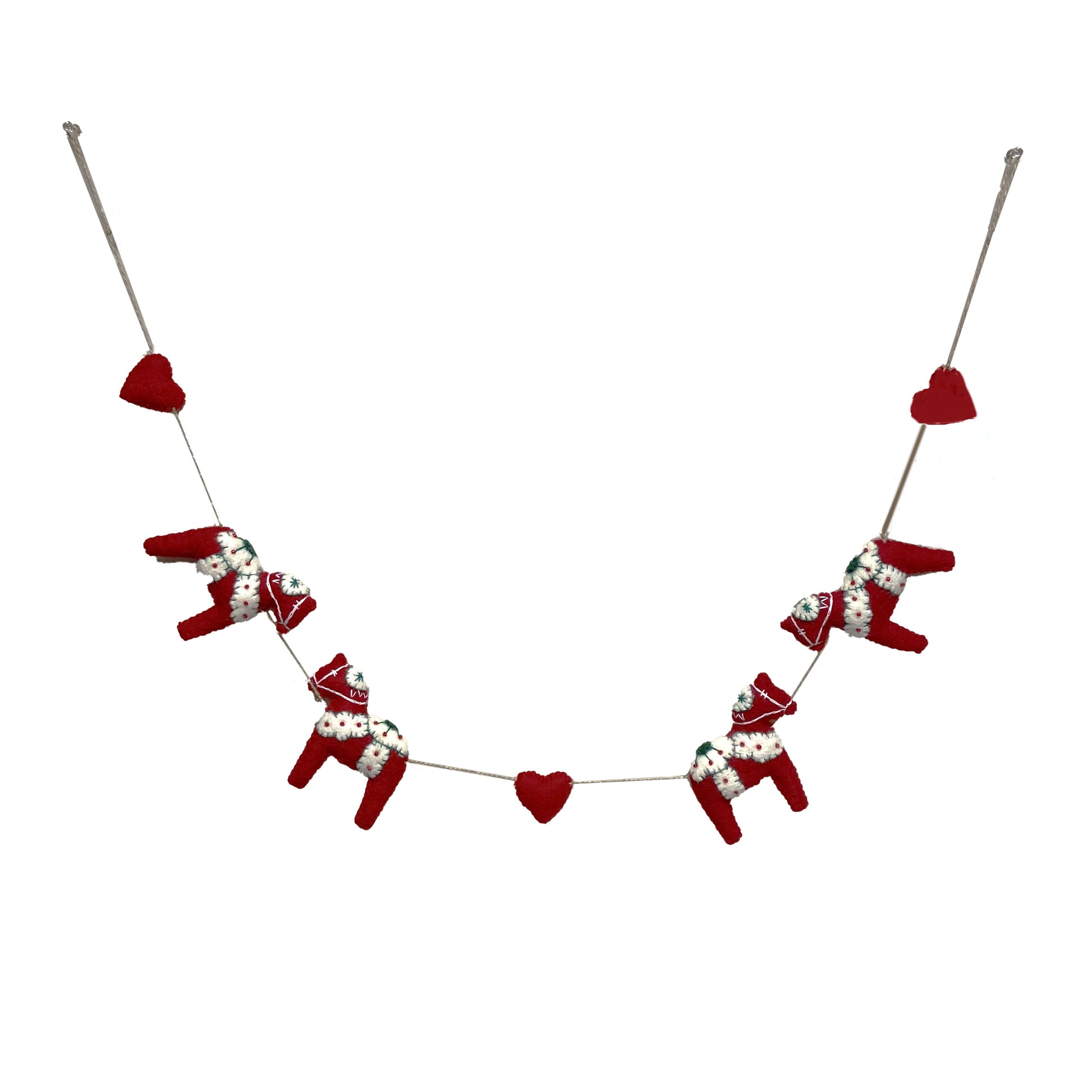 Felt Dala Horse Garland with Hearts