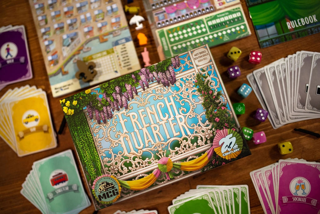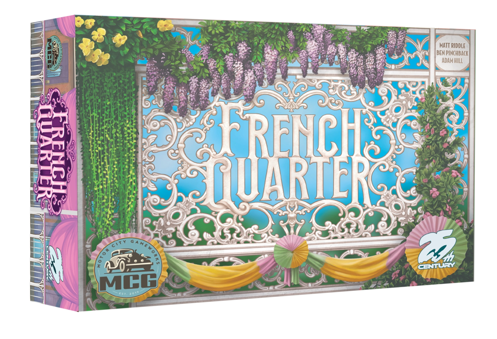French Quarter is the 4th loaded roll and write in the series by designers Matt Riddle, Ben Pinchback, and Adam Hill. It follows Fleet the Dice Game, Three Sisters, and Motor City.