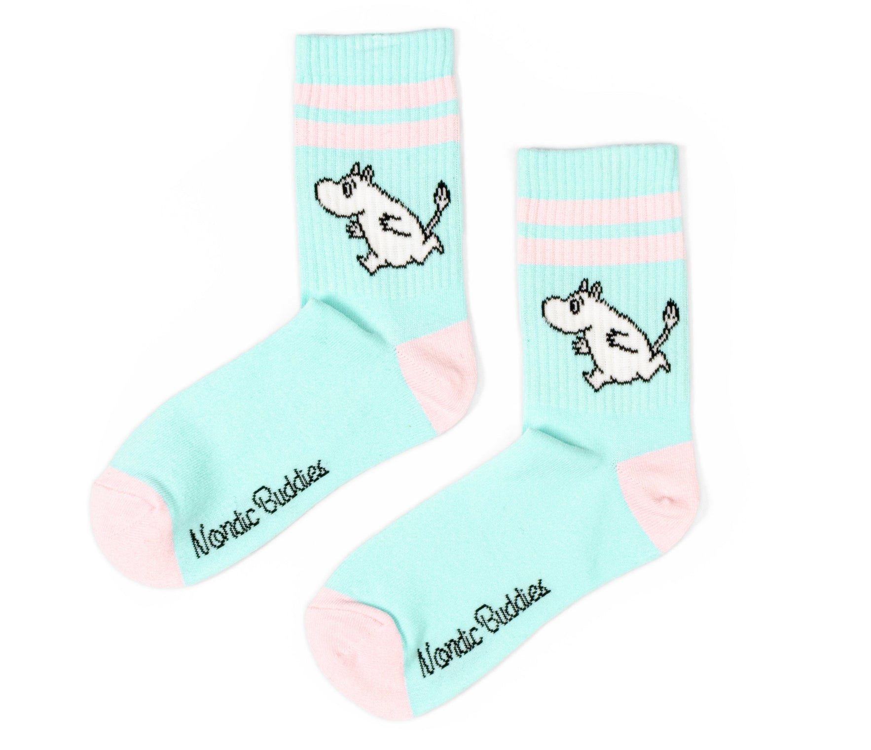 Go crazy and throw somersaults with Moomintroll! In lovely pastel blue retro socks, you are sure to succeed!