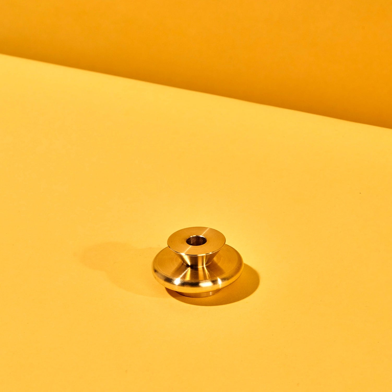 An elegant little candle holder made of solid brass! Tiny but heavy and sturdy.